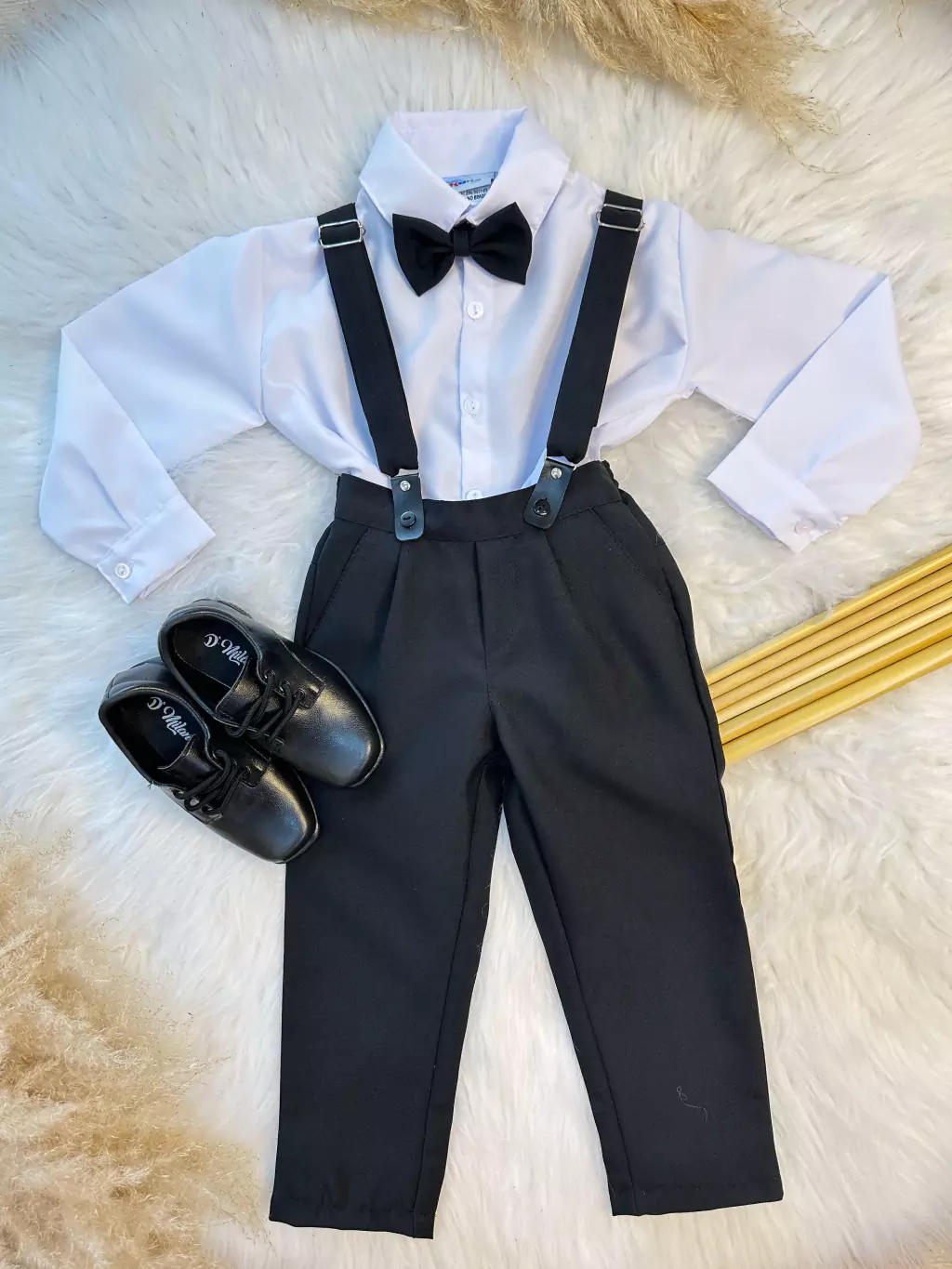 Calça Social preto com Suspensório e gravata, Blusa Social Branca 🖤